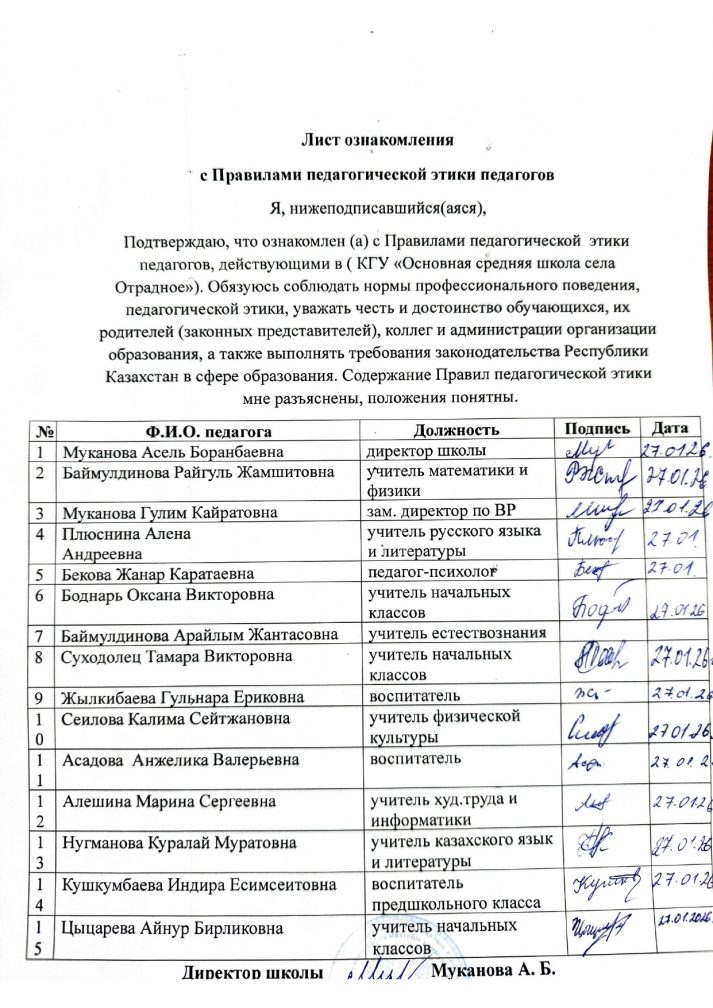 Коммунальное государственное учреждение «Отрадненская основная школа» села Отрадное  отдела образования по Жаркаинскому району управления образования Акмолинской области»